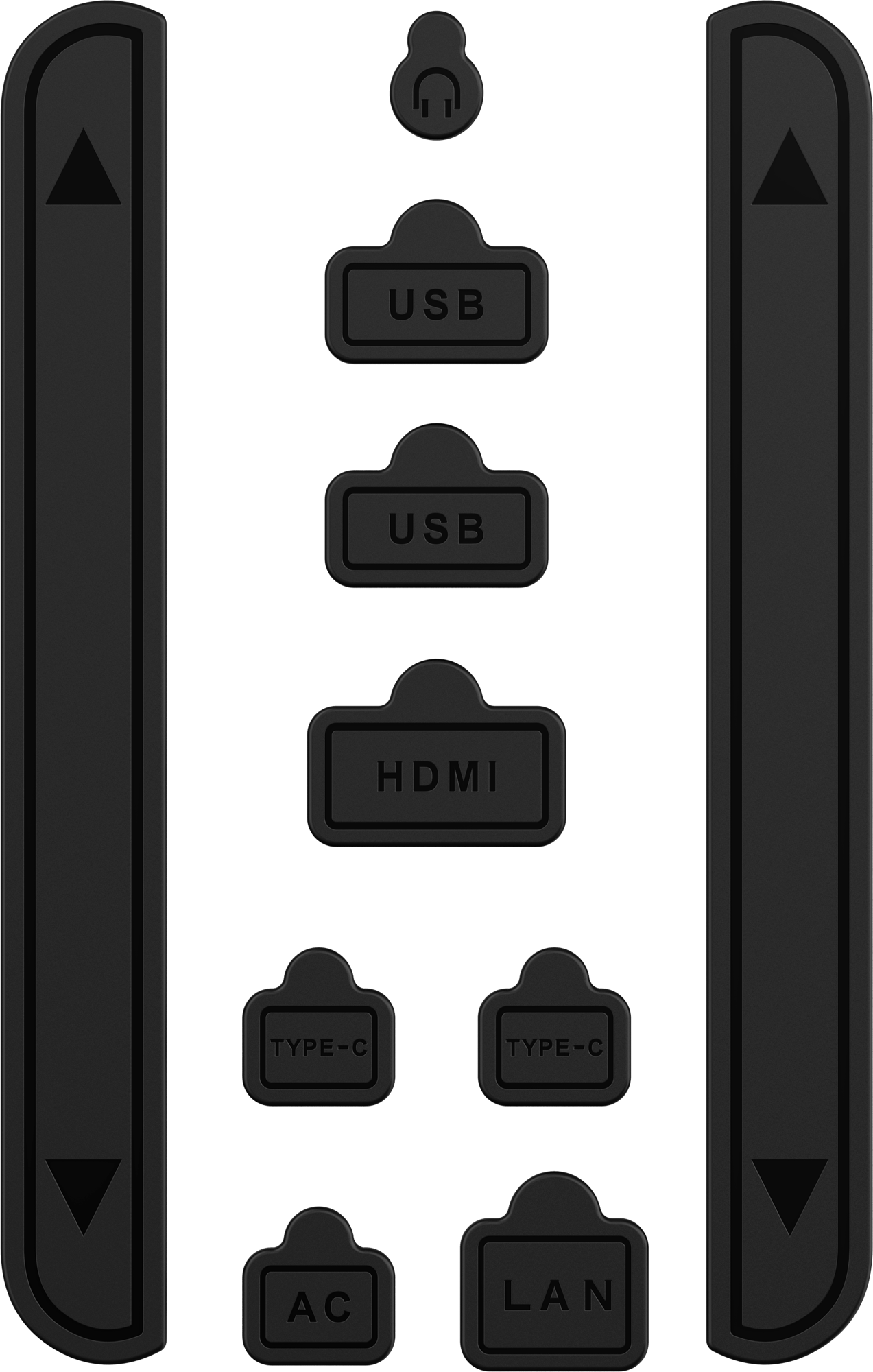 ■セット内容: 本体側面用×2、ヘッドホンマイク端子用×1、USB Type-C端子用×3、USB A端子用×2、HDMI端子用×1、LAN端子用×1、