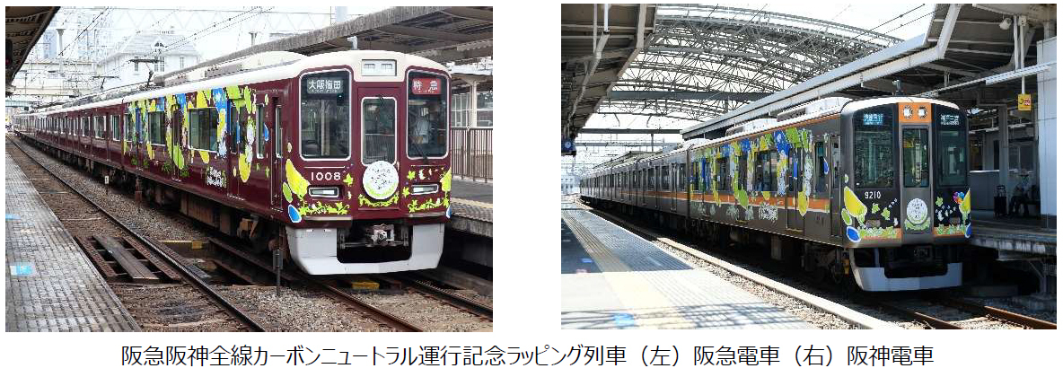 【掲出場所】阪急電車・阪神電車の「阪急阪神全線カーボンニュートラル運行記念ラッピング列車」の車内中吊りなど
