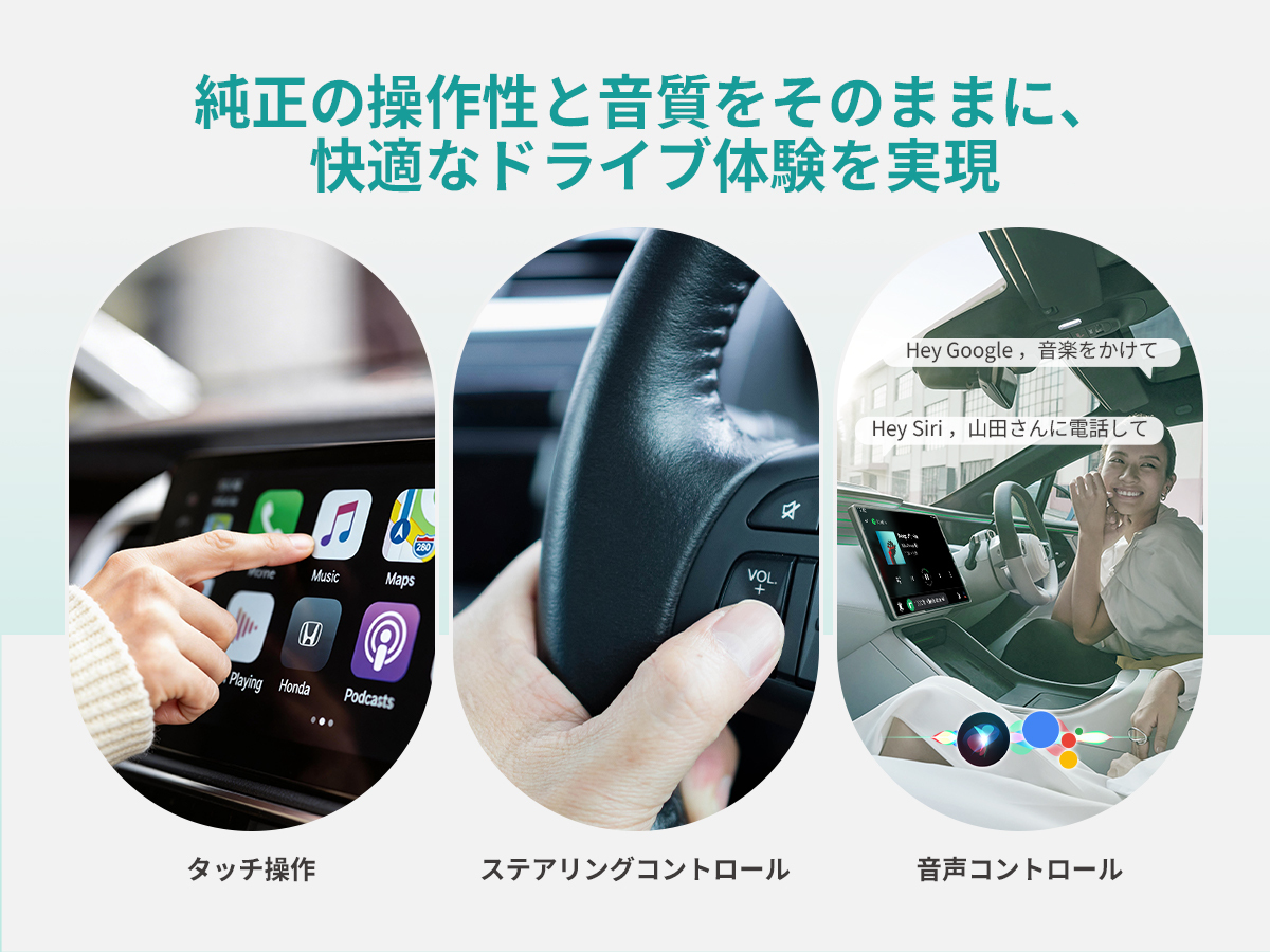 また、純正有線CarPlay/Android Autoを搭載した、ほぼすべての車種(約98%以上)でご使用いただけます。