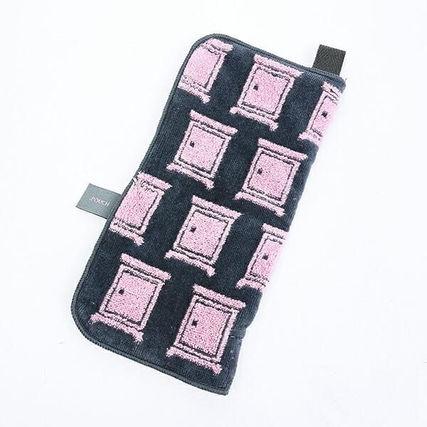 続いては、ショートよりも高さのあるタイプのどっとポーチです。落ち着いたカラーに、ドラえもんの道具と言えばの「どこでもドア」をたくさんデザインしたユニークなもの。