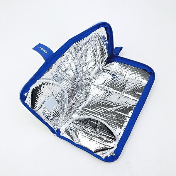 他の2点と違い、こちらは内側にアルミシートが付いていることが特徴です。実はこちら、ペットボトルや缶飲料を入れるのに特化した手イプのどっとポーチなんです。