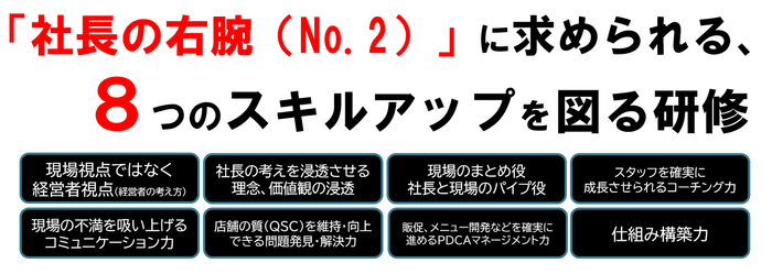 飲食企業の幹部・マネージャーのための研修が2/20(月)開講! 「社長の右腕(No.2)養成講座“第1期”」受講生募集中 ~「社長の右腕」になりうる8つのスキル~
