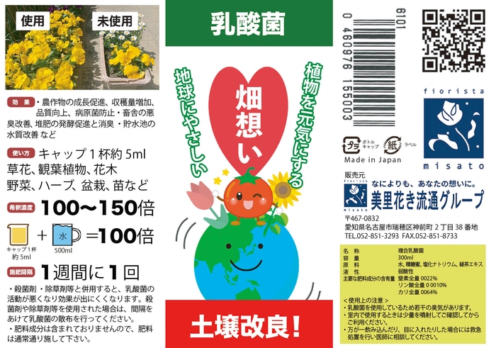 株式会社美里花き流通グループは(本社:愛知県名古屋市瑞穂区)ヒトに役立つ乳酸菌がお花や野菜の育成として使えるように複合乳酸菌を開発し『畑想い』として2022年10月1日に販売開始します。