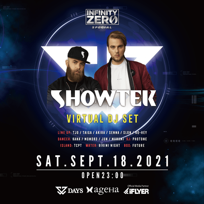 「INFINITY ZERO Special Showtek VIRTUAL DJ SET」 2021年9月18日(土)開催決定 @新木場ageHa