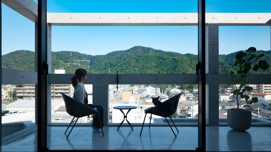 また同じ1階には、入居者や地域住民が多目的に利用できるフリールーム『salon de Repos(サロン・ド・ルポ)』をつくりました。約48m2の広さがあり、窓からは山科川を眺められます。例えば遠方に暮らす孫や動物好きの友人と一緒に過ごしたり、保護犬の里親になるためのマッチングをおこなったり。「愛犬の床(R)」のショールームや、ペットを通じた入居者同士のコミュニティをつくる場としても活躍します。