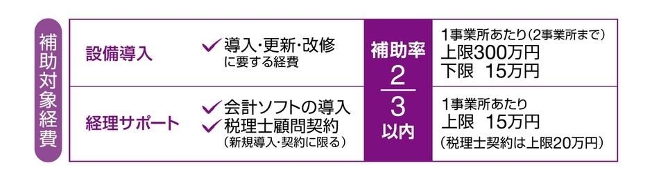 当補助金はエネルギー価格や物価高騰に直面する中小企業者等の生産性向上と更なる賃上げを促進することを目的としたもので、設備の導入・更新・改修等に要する経費の一部を最大300万円(補助率2/3以内)補助します。