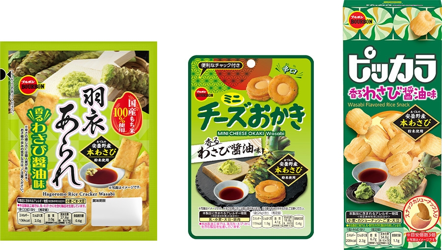 株式会社ブルボン(本社:新潟県柏崎市、代表取締役社長:吉田 匡慶)は、長野県安曇野産本わさびの粉末を使用し、風味豊かに仕上げた「羽衣あられ香るわさび醤油味」など3品を2026年4月7日(火)に期間限定で新発売いたします。