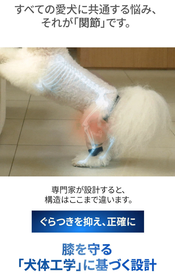 ▲愛犬の動きに合わせた「ぐらつきの抑制」と「正確な固定」が関節管理の鍵となる