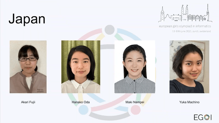 「第1回ヨーロッパ女子情報オリンピック(EGOI 2021)」を オンラインで初開催 日本から代表選手4名が参加