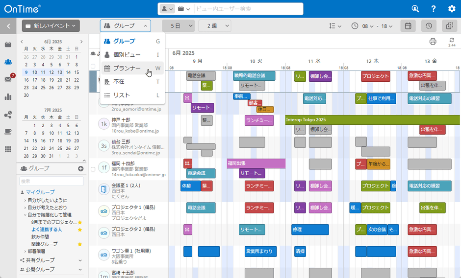 OnTimeを採用する際に喜ばれている機能に表示用グループ機能があります。主な機能として以下の機能があります。