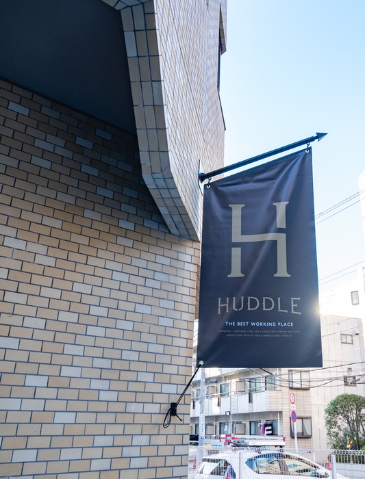HUDDLEの名前の由来は、英語を直訳した「身を寄せ合う・集まる」場所。それに加えて、アメフトの試合で見られる「円陣を組んだ作戦会議」の意味も含まれています。「すべての人を価値の創り手にする」といったビジョンをもち、ミッションは「感性を動かし、知性を刺激し、発想を引き出す」ことです。この考えのもと、HUDDLEには4つの特徴があります。