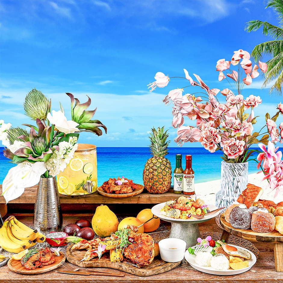 フードは約80種類。3種類のミンチをブレンドした肉々しい特製パティをのせた「アラ・モアナ・ロコモコ」(1,100円~)や特製BBQソースでじっくりと焼き上げた「スペアリブ」(1,900円~)、スパイシーやレモンハーブなど5種類のフレーバーからお選びいただける「ノースショア・ガーリックシュリンプ」(1,100円)など定番ハワイアングルメをご提供。メイン料理とライス、5種類の特製デリをのせたワンプレートメニュー(1,400円)は、ランチにもぴったりです。自家製パンの食べ放題ビュッフェ(650円)のほか、北海道産小麦粉「春よ恋」を使用した独自配合の生地で外はサクッと、中はふんわり食感に仕上げたハワイアンドーナツ「マラサダドーナツ」9種類(350円~)は、出来たてでご用意。手土産としてテイクアウトもいただけます。