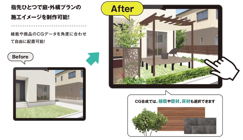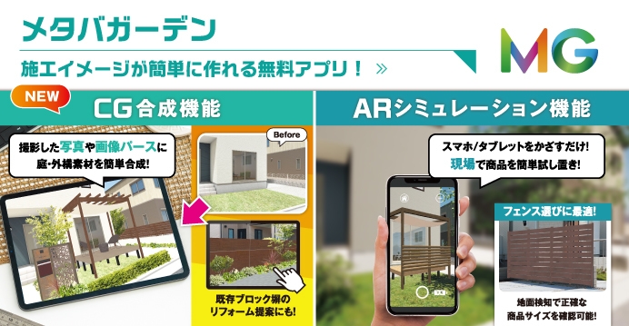 業界初!クラウド連携型外構提案アプリ『メタバガーデン』 AR機能に加え、7月15日よりCG合成機能が新たに追加!
