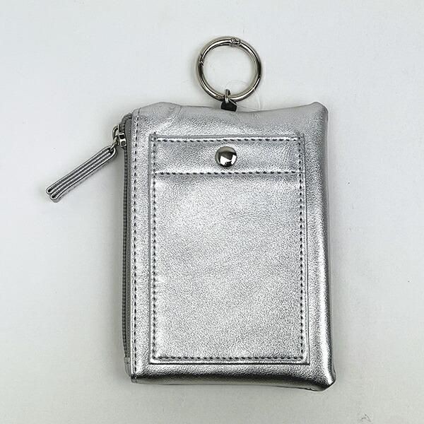 こちらはシルバーメタリックです。デザインは比較的少な目ですが、きらきらっとちょっと派手なメタリックでかばんにつけて存在感のある小物になりそうです。合成皮革で安っぽい印象もなく、おしゃれに取り付けやすそうです。