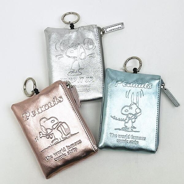 スヌーピーのメタリックカラーがオシャレすぎる。どちらにも伸びるリールも付いたおしゃれで便利なパスポーチです。