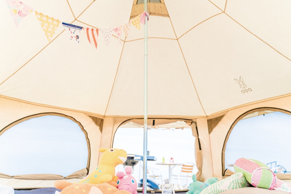 中はソファなどが設置されているので快適なビーチでのグランピングを楽しむことができます。
