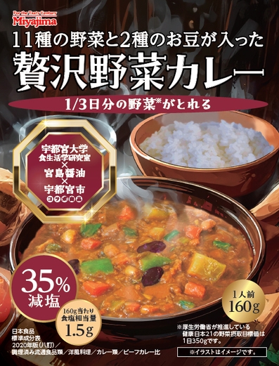 宮島醤油株式会社(本社:佐賀県唐津市、代表取締役社長:宮島 治)は、宇都宮大学、宮島醤油、宇都宮市の産学官連携商品「11種の野菜と2種のお豆が入った贅沢野菜カレー」を2026年3月1日より栃木県限定で発売いたします。