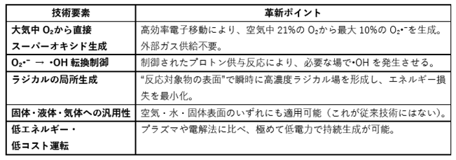 その理由は、活性酸素を“反応場で必要なだけ生成する”技術が存在しなかったからです。