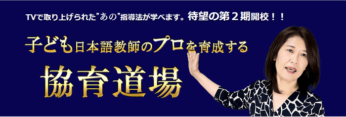 文部科学省による最新の報告によると、日本語指導が必要な児童生徒数は約5万人。しかし、日本語が全くわからない状態から、体系的に教えることができるプロの子ども日本語教師は不足しています。子どもの日本語力を伸ばすために、どのような教材をつかって、どうやって教えたらよいのか。具体的な指導法と教師力を身につけた人材を育てるための子ども日本語教師育成塾「協育道場」を開校します。