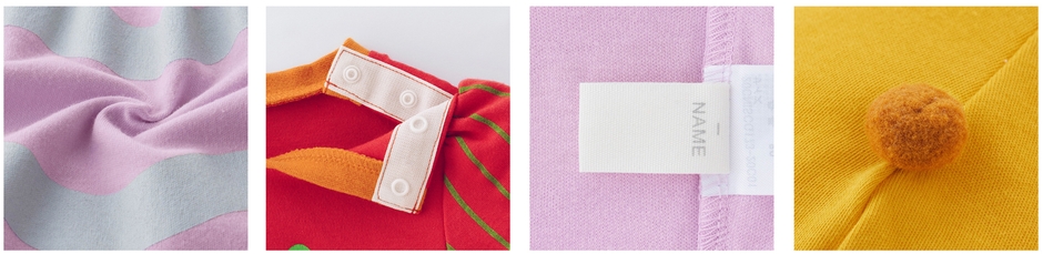 ベルメゾンでは、2019年よりNHKの乳幼児向け番組「いないいないばあっ!」および幼児番組「みいつけた!」のオリジナル商品を多数展開してきました。今回は、番組に登場する子役のカラフルで可愛らしい洋服を子どもに着せたい、というお客様のご要望にお応えして、「いないいないばあっ!」の<はるちゃん>と<「ピカピカブ~!」の赤ちゃん>のコスチュームを再現した4アイテムを展開します。実際の衣装のデザインポイントを押さえながら、赤ちゃんが動きやすいように立体的なモチーフや装飾を最小限に抑えるなど、細部までこだわっています。