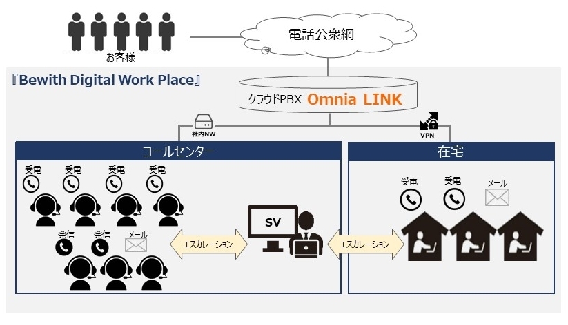 今回のキャンペーンでは、事業継続のためコンタクトセンターのBCP対策を強化をしたい企業や、在宅コンタクトセンターの導入方法が分からない、アウトソーシングだけでも在宅だけでも不安があるといった企業に、センター業務の一部を在宅化するハイブリッド型の運営を提案してまいります。在宅での業務がスムーズに開始できるよう、「Bewith Digital Work Place」で在宅コンタクトセンターの導入を支援いたします。