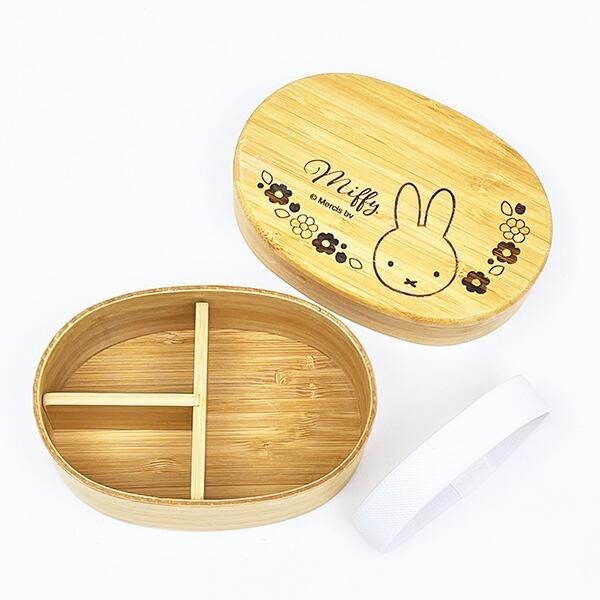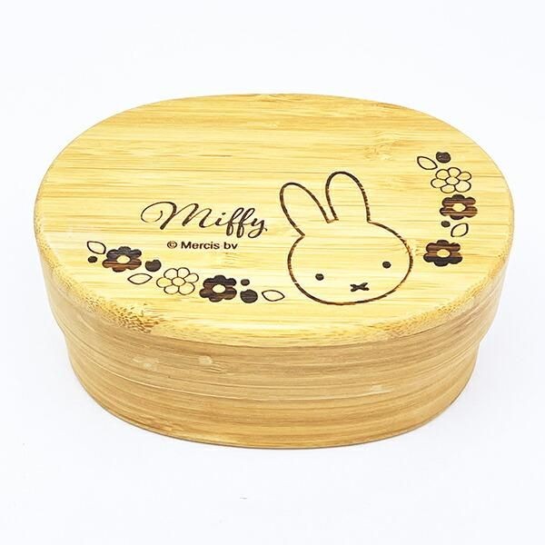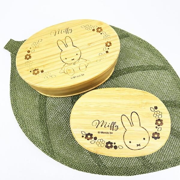 ちょっとめずらしい竹製のお弁当箱です。調印でデザインされたようなミッフィーのデザインがナチュラルで優しい雰囲気なデザインです。