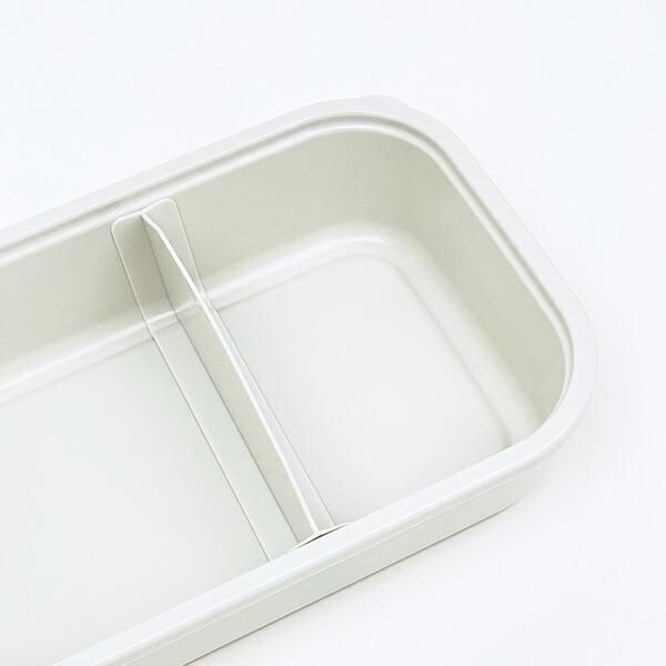 全体的に清潔感あるホワイトトーンが食品を入れるお弁当箱にぴったり。材が潰れにくいふわっとフタ。中身が片寄りにくい、高めの仕切付き。指をかけて開けやすいフタ。と便利なポイントが盛りだくさんです。また、フタを外して電子レンジOKでお外でもレンジで温めることができます。食洗機も使用可能です。【容量:830ml】サイズ:5.5cm×14cm×21cm 素材:本体・フタ・仕切り:ポリプロピレン(-20~140度)