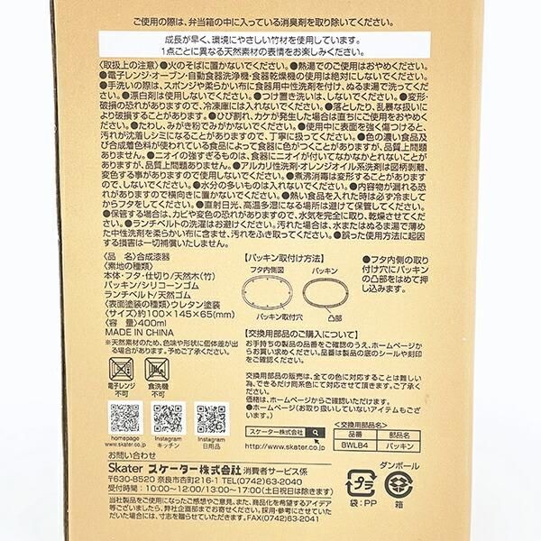 サイズ:10cm×14.5cm×6.5cm 素材:品名:合成漆器、表面塗装の種類:ウレタン塗装、素地の種類本体・フタ・仕切り:天然木(竹)、パッキン:シリコーンゴム、ランチベルト:天然ゴム
