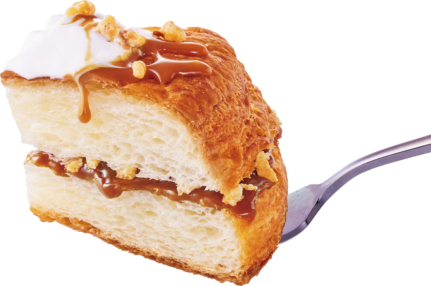 【シロノワール クルミッ子】は、デニッシュにサンドしたキャラメルペーストとクラッシュサブレで、クルミッ子のザクッザクッとした食感と、見た目を表現。クルミは別添えで提供し、おいしいの先にある幸せや笑顔を体験できる仕掛けにしています。さらにパッケージデザインにもこだわり、「リスくん」が大きなスプーンを使ってシロノワールにクルミをかける姿は、とても可愛い仕上がりになっています。ぜひご注目ください。