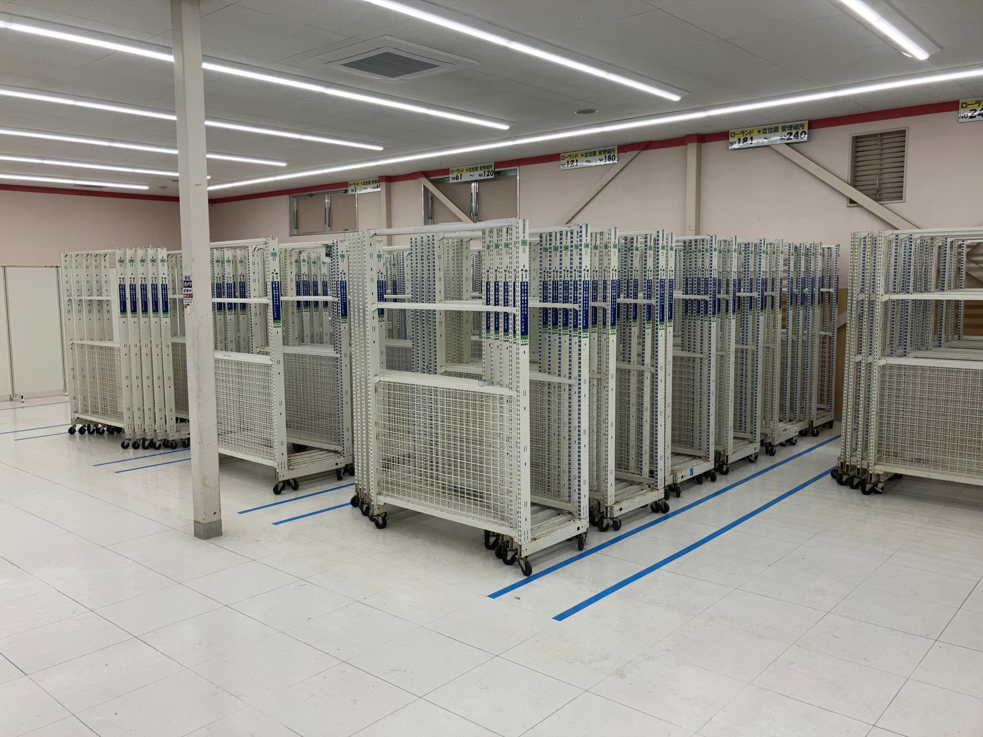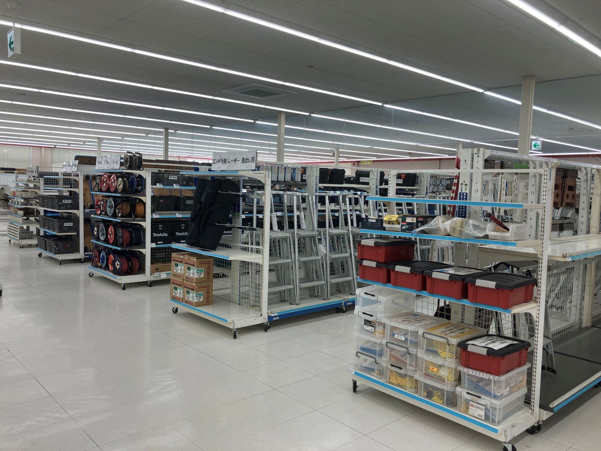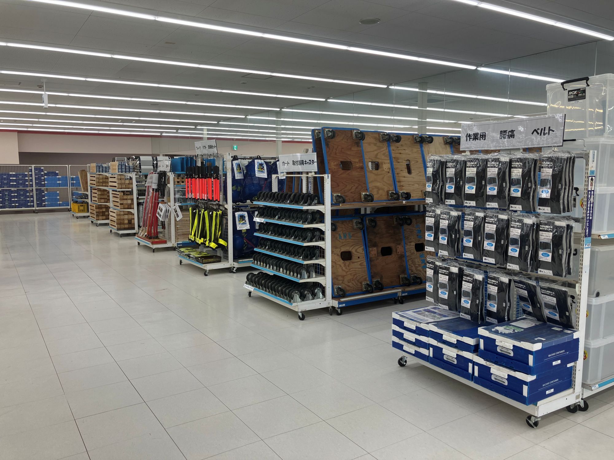 当社の主力サービスの一つは小売店舗での改装作業の請負いであり、改装作業を効率化する当社独自の什器・ツールや仮売場用の商品陳列什器などを、改装を行う各地の小売店舗へ当社物流センターより発送しております。