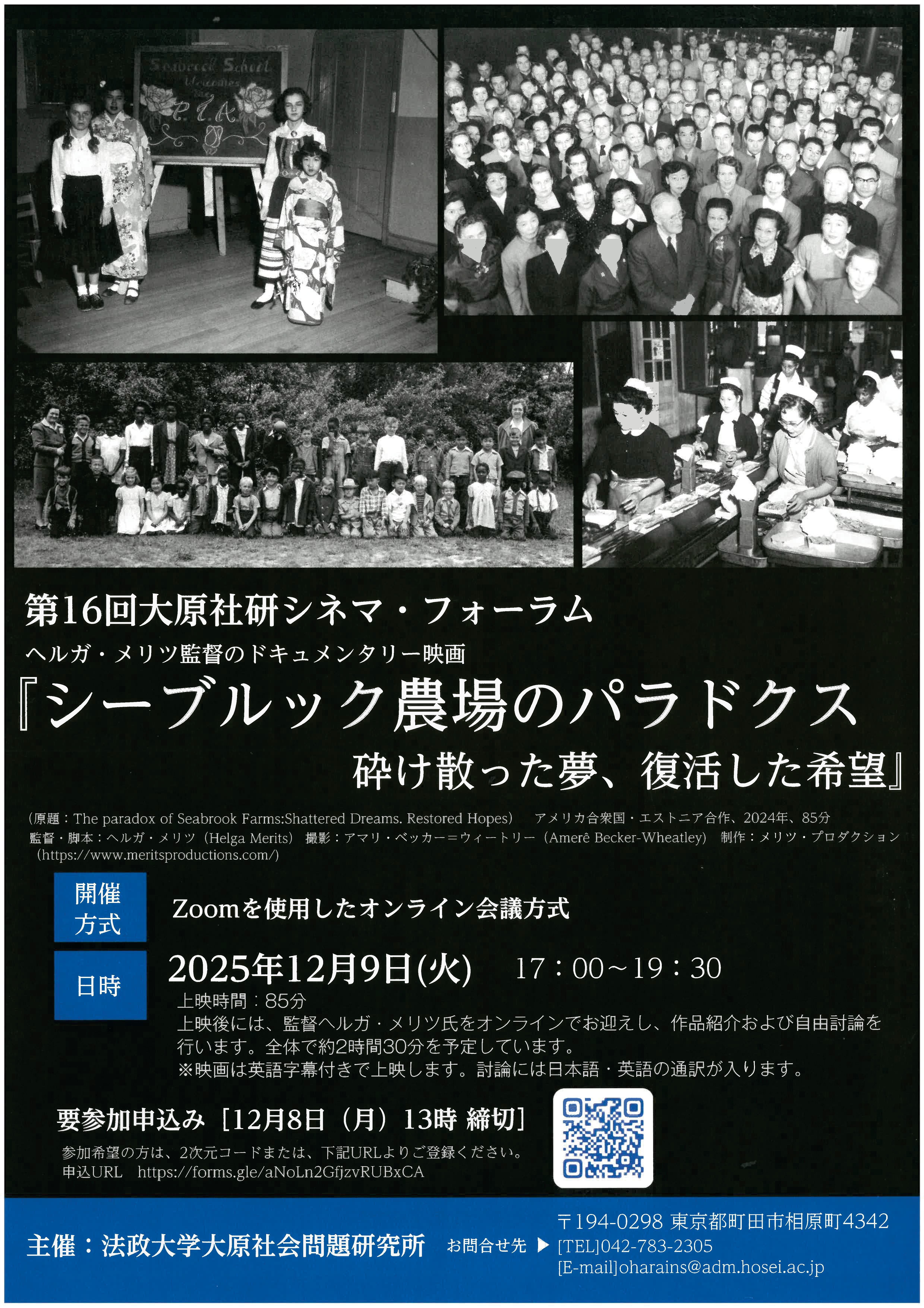 第16回大原社研シネマ・フォーラム 『シーブルック農場のパラドクス 砕け散った夢、復活した希望』 上映会&トークを12月9日(火)Zoom開催