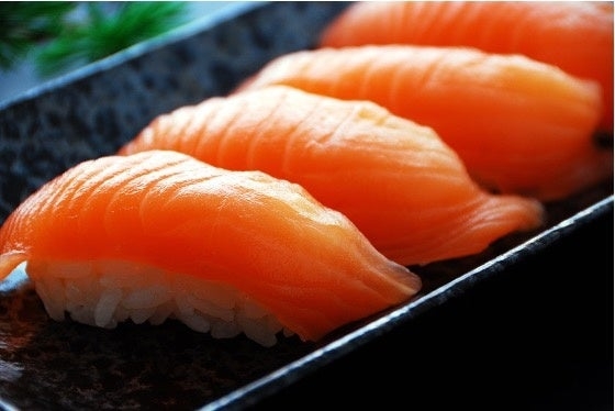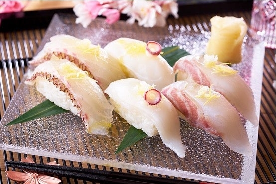 水温20度以下の環境でしか育たないと言われるトラウトサーモン。福井の低水温環境を活かして育てられた<ふくいサーモン>は握り寿司で。4月~6月が旬とされ、上品な脂のりともっちりとした身がお楽しみいただけます。