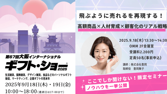 高額商品×人材育成×顧客化のリアル戦略~ 『モノが飛ぶように売れる人の考え方』著者 豊岡 舞子が 大阪インターナショナル・ギフト・ショーで特別講演~