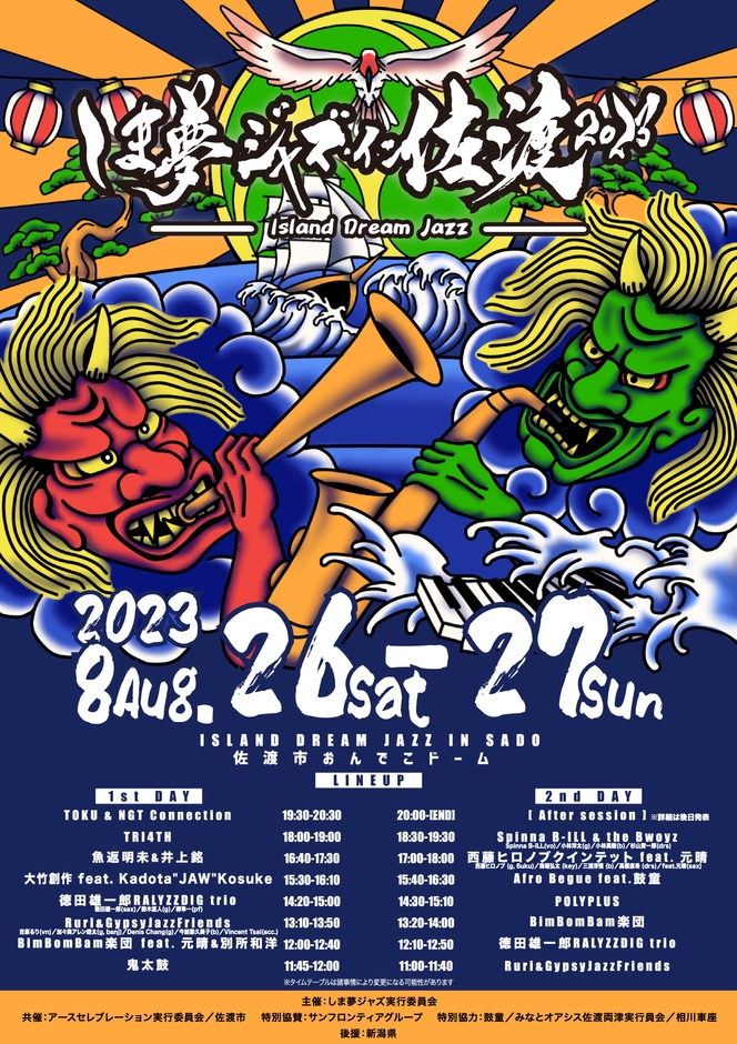 しま夢ジャズ実行委員会(実行委員長:能 厚準)は2023年8月26日(土)・27日(日)、新潟県佐渡市のおんでこドームで、入場無料※の『しま夢ジャズ・イン佐渡2023』を初開催します。