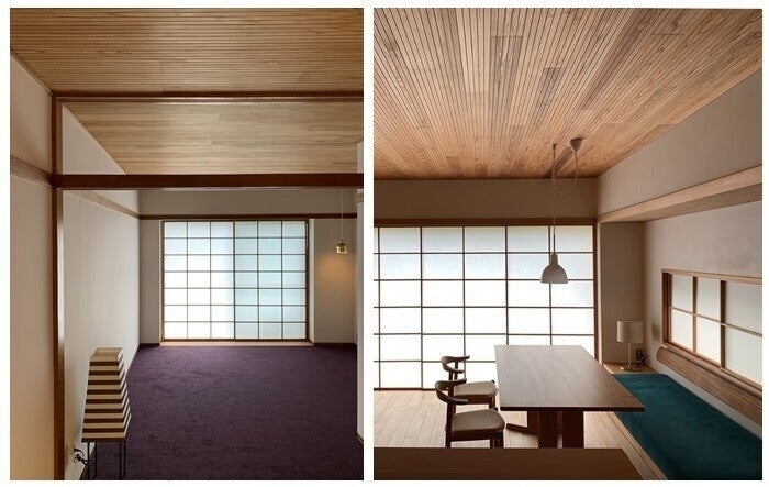 リビング・ダイニングの障子のデザインも変えました。寝室の障子はオリジナルを残しています。吉村先生も晩年は障子の幅が大きくなっていったというのもあって、それぞれの幅の違いなんかも意識的に遊びながら変えました。