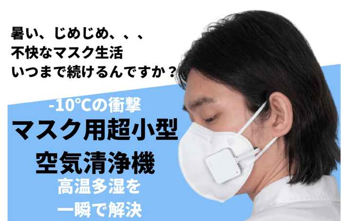 ・マスクによる湿気、息苦しさ、不快感を改善するマスク用ポータブル空気清浄機「Air Clip」