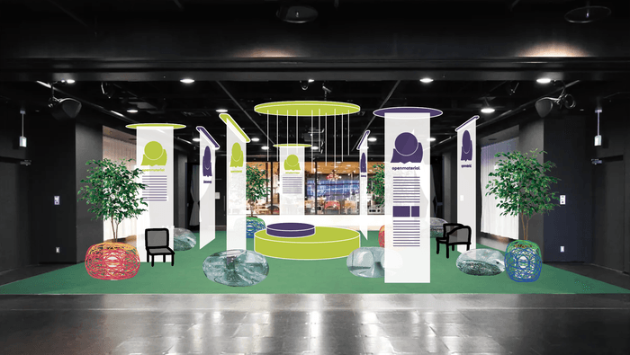 本企画展は「アップサイクルラウンジ」をキーワードに、「openmaterial」の新たなアップサイクルの仕組みや交流のある企業のゴミの循環の取り組みを紹介します。また、それらの取り組みによって生まれたアップサイクル素材を使用した家具や什器を展開します。