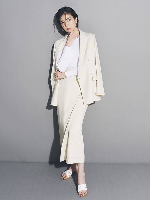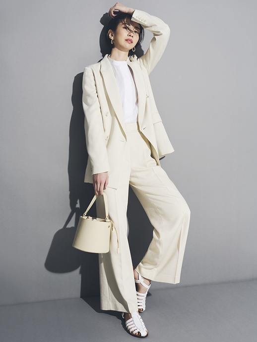 夏も快適に過ごせる麻混の素材で、光沢のあるきれいめな表情とストレッチ性が特徴です。ジャケット・テーパードパンツに加えて、この夏トレンドのジレやアンクル丈のワイドパンツも揃っているので、自由な着こなしを楽しんでいただけます。