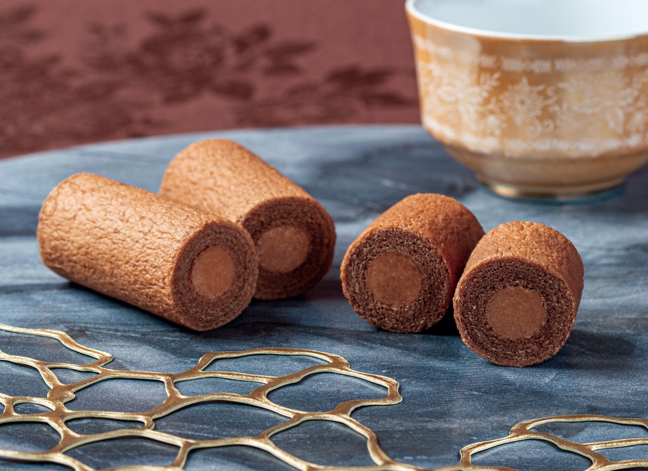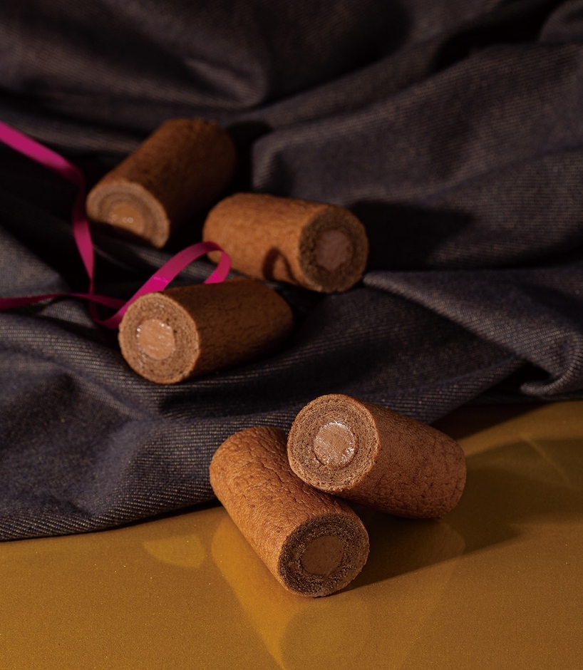 手のひらサイズのミニバーム生地には、チョコレートを練り込み、チョコ感たっぷりしっとりバームクーヘンに焼き上げました。ヘーゼルナッツのオイルで香りに上質感が漂い、クリームを引き立ててくれる深い味わいに。ひとくち食べれば、チョコとナッツの香りが口いっぱいに広がり、美味しい余韻が楽しめます。