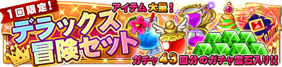 ガチャ43回分のガチャ宝石13000個が入った超お得セットが大量の冒険に役立つアイテムとセットになって登場!