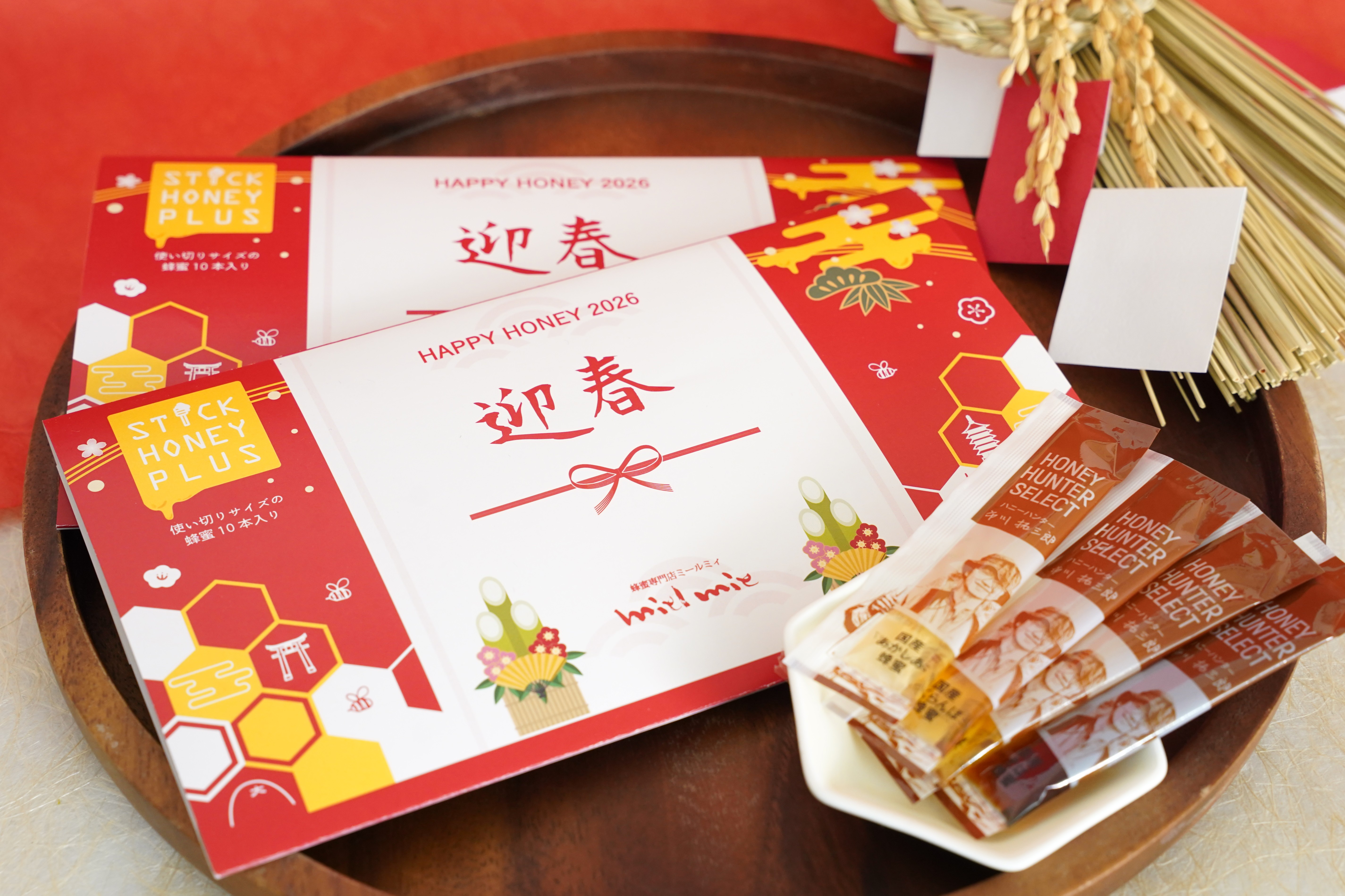 京都の蜂蜜専門店「ミールミィ」(運営:株式会社金市商店/京都市中京区)は、「スティックハニープラス ハニーハンターセレクト 10種類食べ比べ -2026新春限定パッケージ-」を2025年12月1日(月)より期間限定で発売いたします。