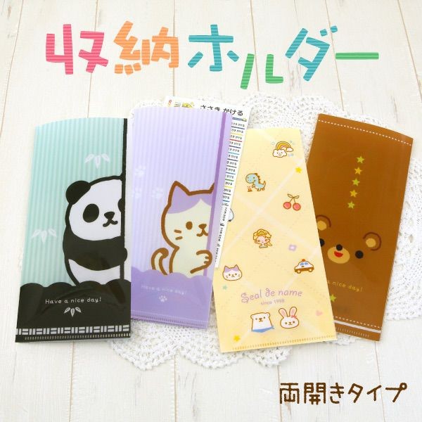 シールDEネームの『みましたッ!スタンプ』で販売中の、“ちらシリーズ”をホルダーにしました。どちらも、かわいらしさと落ち着きを両立したアニマルデザインです。