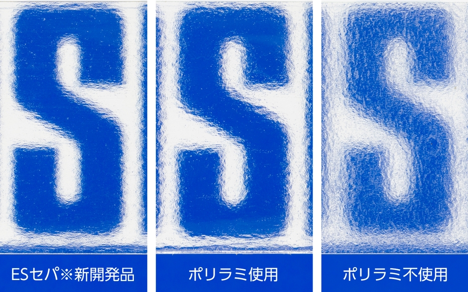 今回OSPが新たに開発した高平滑剥離紙は、当社独自の塗工技術により剥離表面の平滑性を高めることに成功。ポリラミ不使用の紙基材の剥離紙でありながら、ポリラミ使用品以上のラベルの透明性を実現しました。『脱プラ』による環境負荷低減と、『ラベル透明性の向上』による高い機能性を両立する剥離紙です。