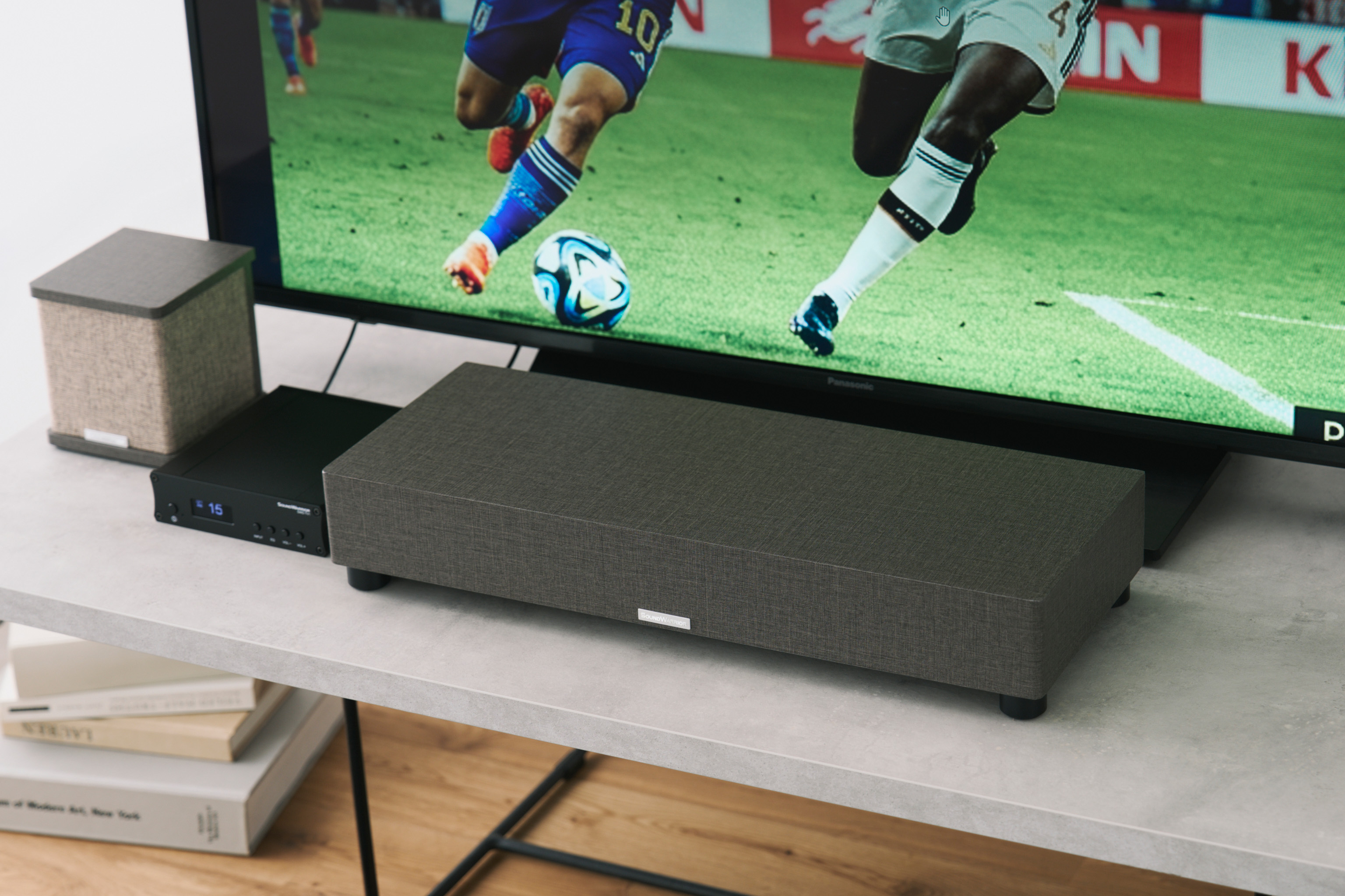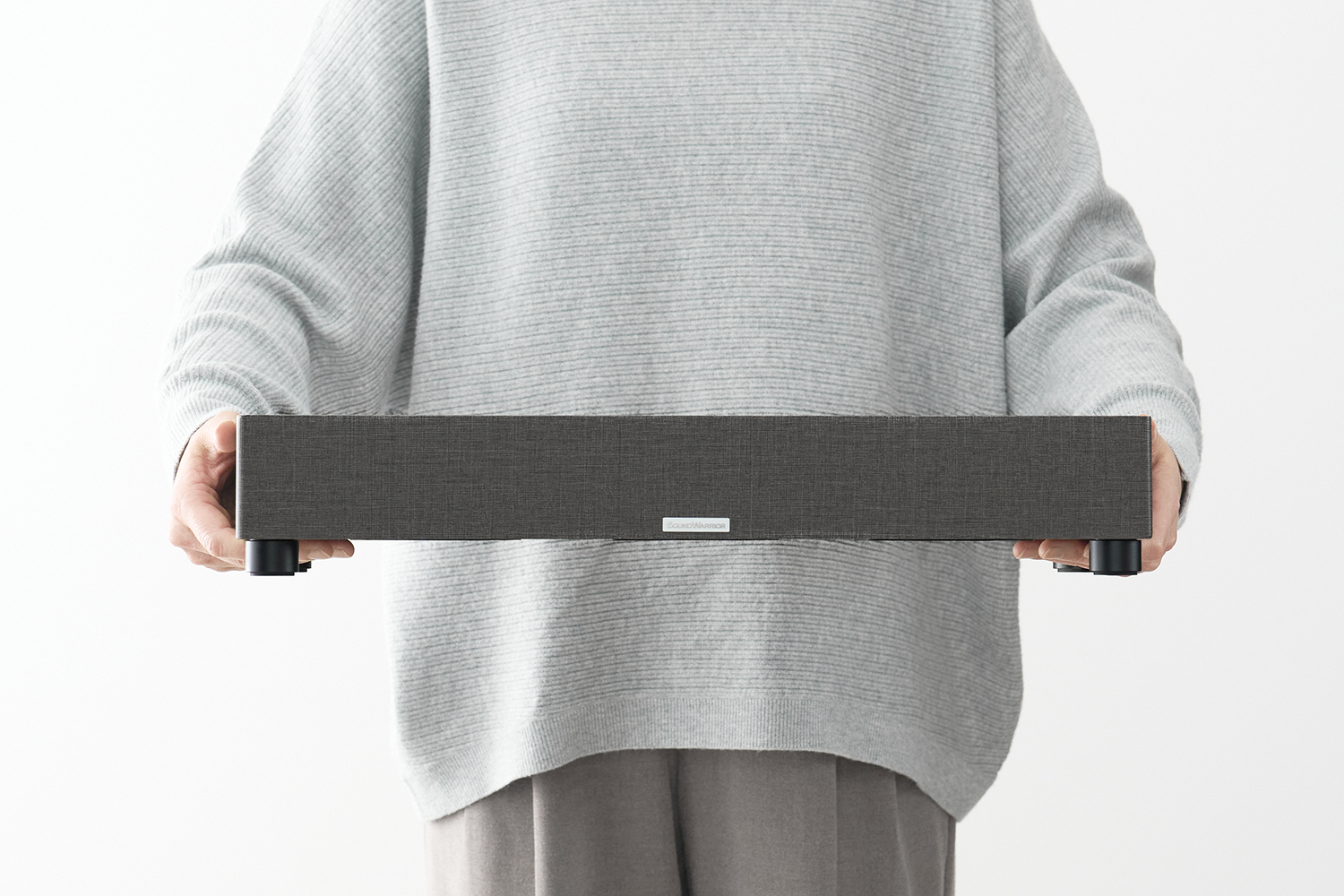 私たちは、薄型テレビやPCモニター、プロジェクター等に内蔵されるスピーカーでは、よりコンパクトさを求める物理的な制約により、音の土台となる“低域”がどうしても不足しがちだと感じていました。