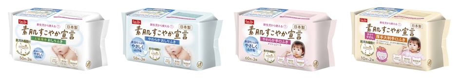 そこで当社では、「赤ちゃんの肌荒れを防ぐ」をコンセプトに、デリケートな肌環境に着目した“プロテクトヴェール処方”を独自開発。『素肌すこやか宣言』シリーズとして、おしりふき・手口ふきを新たに発売いたします。