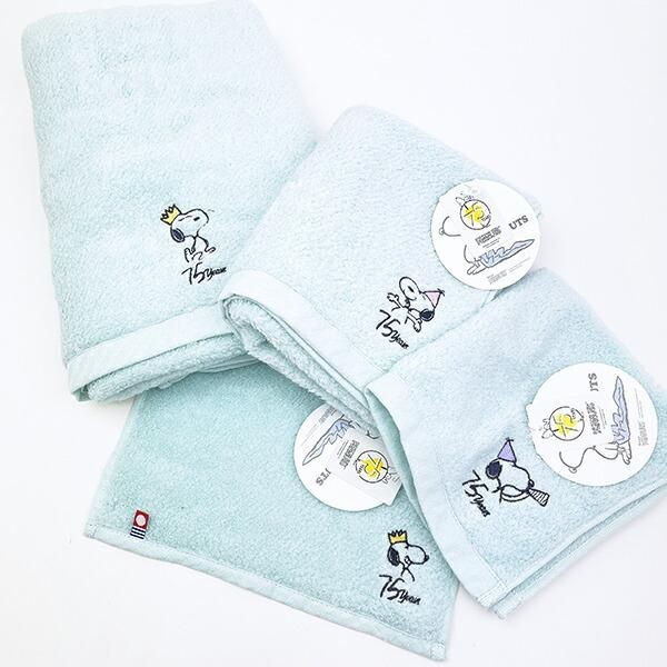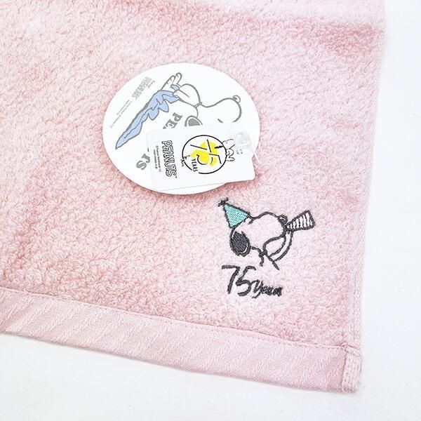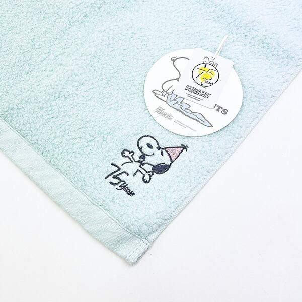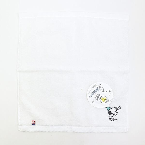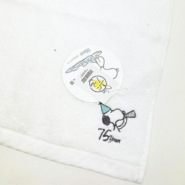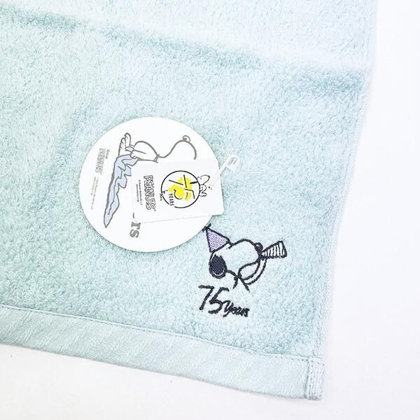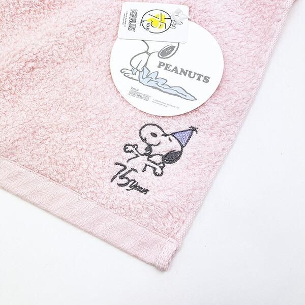 スヌーピー75周年記念アイテム。さりげないかわいさに肌触り抜群な高品質なタオルです。