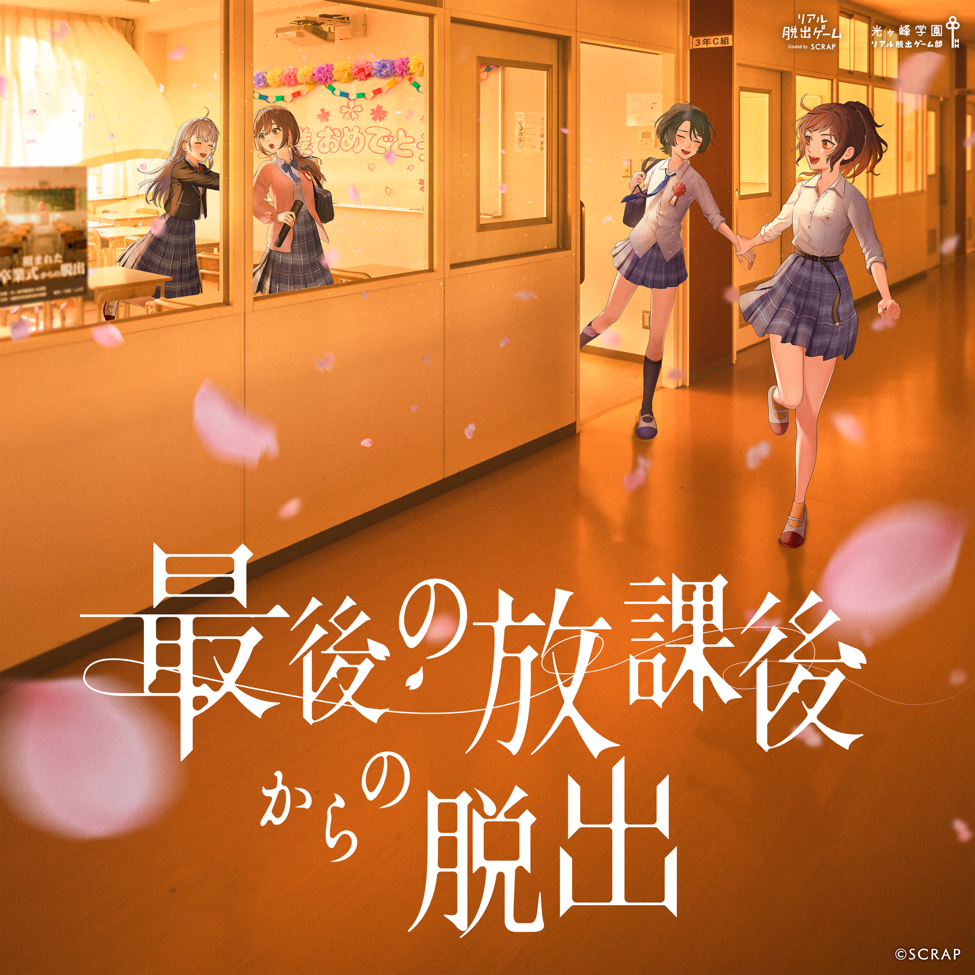 プロジェクト最新作となる『最後の放課後からの脱出』のテーマソングとして「最後の放課後からの脱出」が決定いたしました。歌唱と作詞は「光ヶ峰学園リアル脱出ゲーム部」の4人、作曲と編曲はSCRAPのほぼすべての楽曲を手がける伊藤忠之が担当。本楽曲は、4月2日(木) 0:00よりSpotifyやApple Musicなど各種ストリーミングサービスおよびダウンロードサイトにて配信、販売いたします。