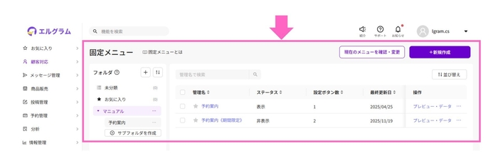 株式会社ミショナ(本社:福岡県福岡市、代表取締役:鈴木隆宏)は、2025年11月27日(木)、Instagram自動化システム「エルグラム」の固定メニュー管理画面を刷新しました。