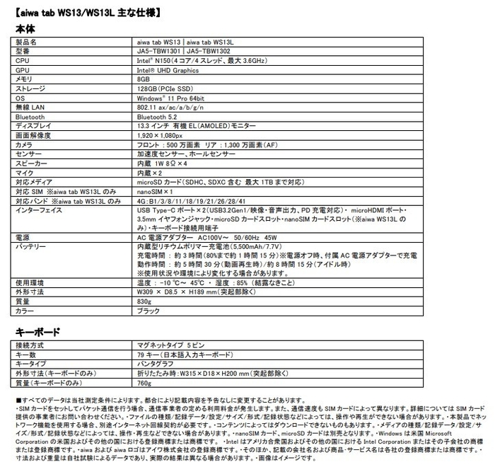“aiwaより大画面13.3インチWindows®11 Pro搭載の2 in 1タブレットが登場”新製品【aiwa tab WS13/WS13L】が法人限定モデルとして本日12月18日より販売開始! | NEWSCAST