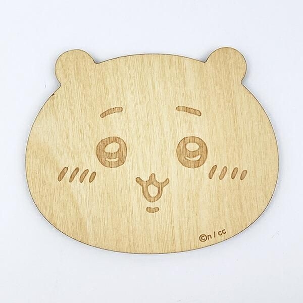 ちいかわのフェイス型の木製のコースターは、木のあたたかみとちいかわの笑顔のダブルで癒しをお届けします。